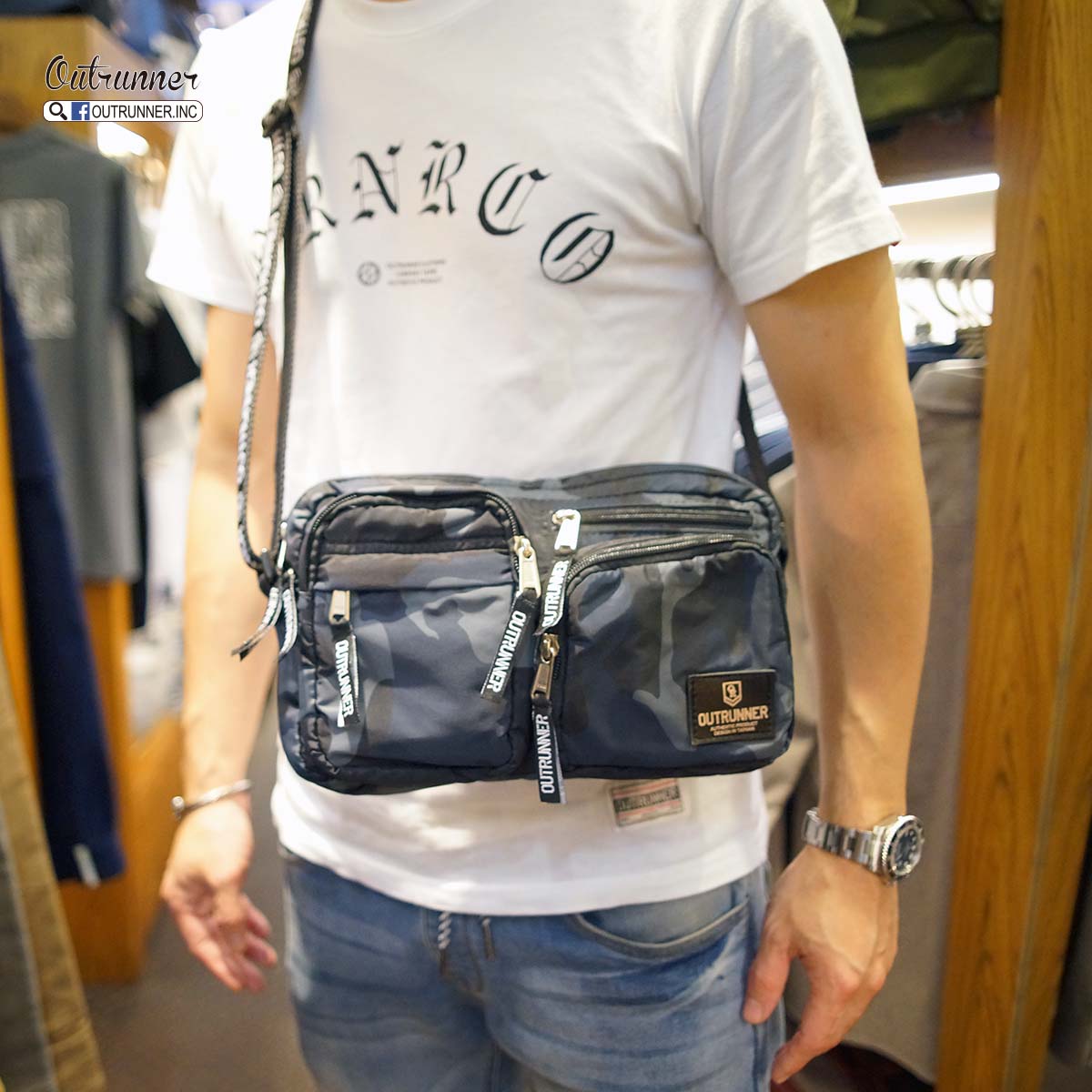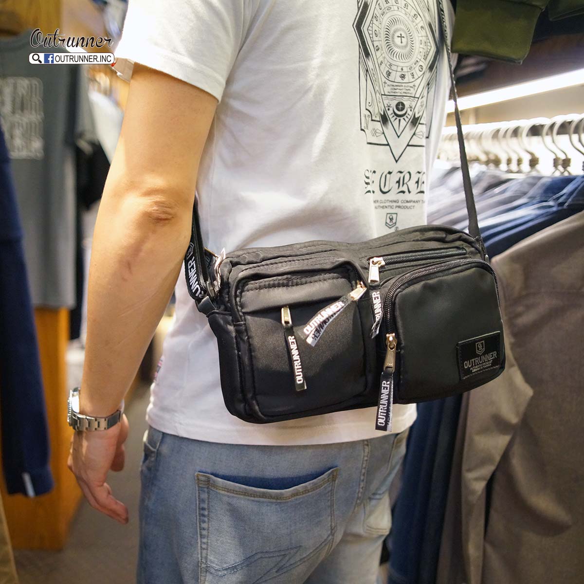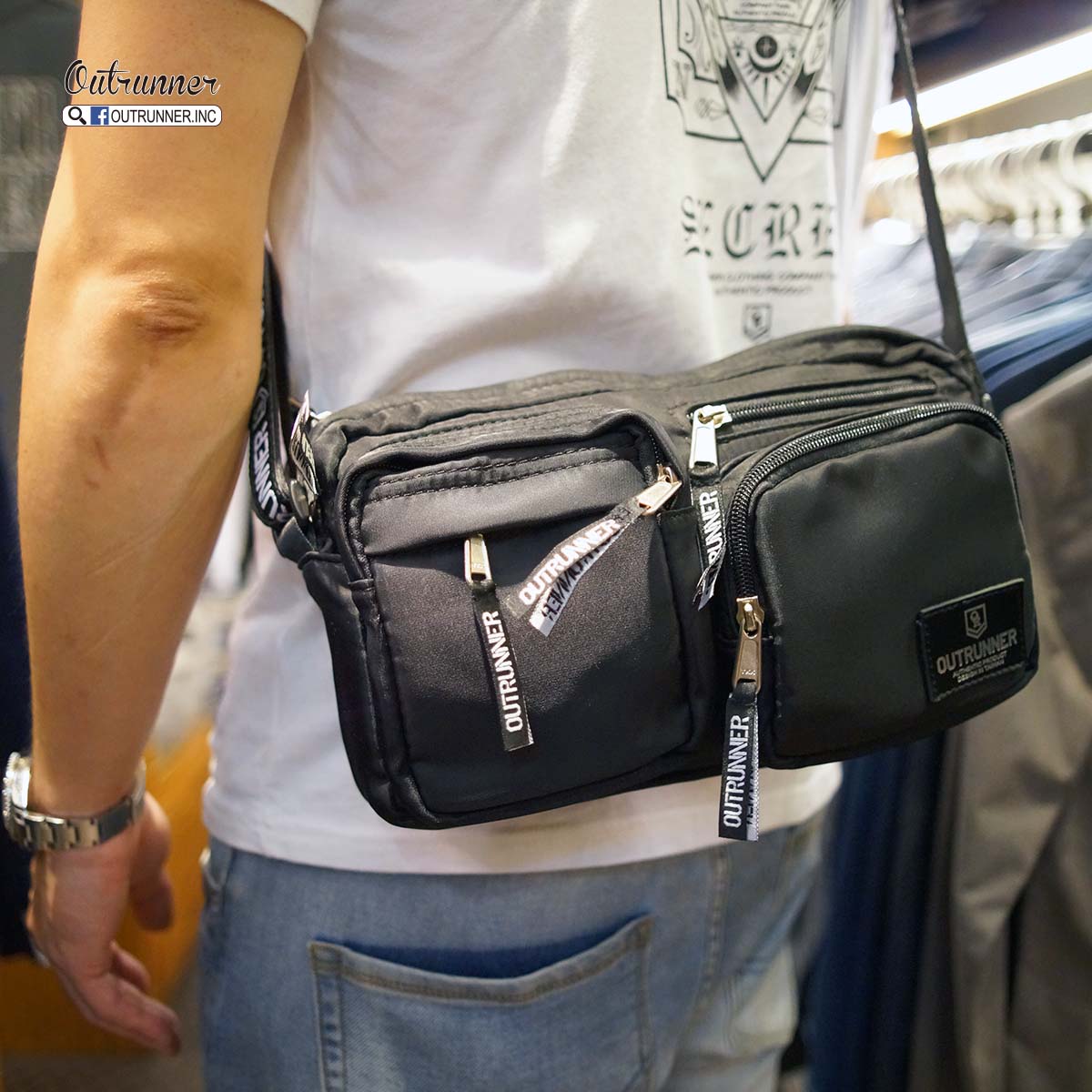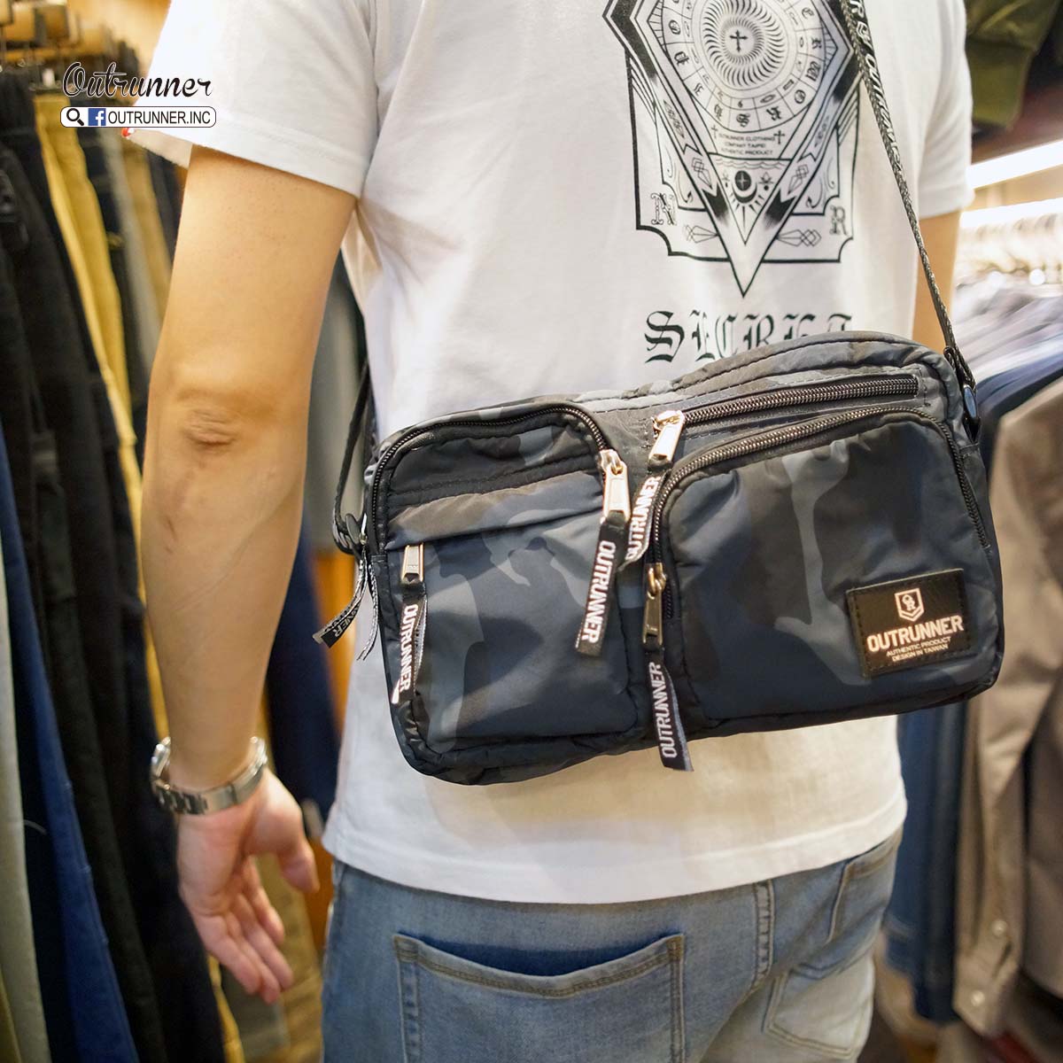 OUTRUNNER 多功能側背包上架,大小適中,適合出門不愛帶太多東西的人使用,此包包作工複雜,一個小包包裡車了七條拉鍊,很好收納小物品,可放手機,行動電源,皮夾等很多小物,可自行收納,內袋品牌專屬印花更添值感,喜歡的朋友千萬別錯過了,限量發售,售完不再補貨。