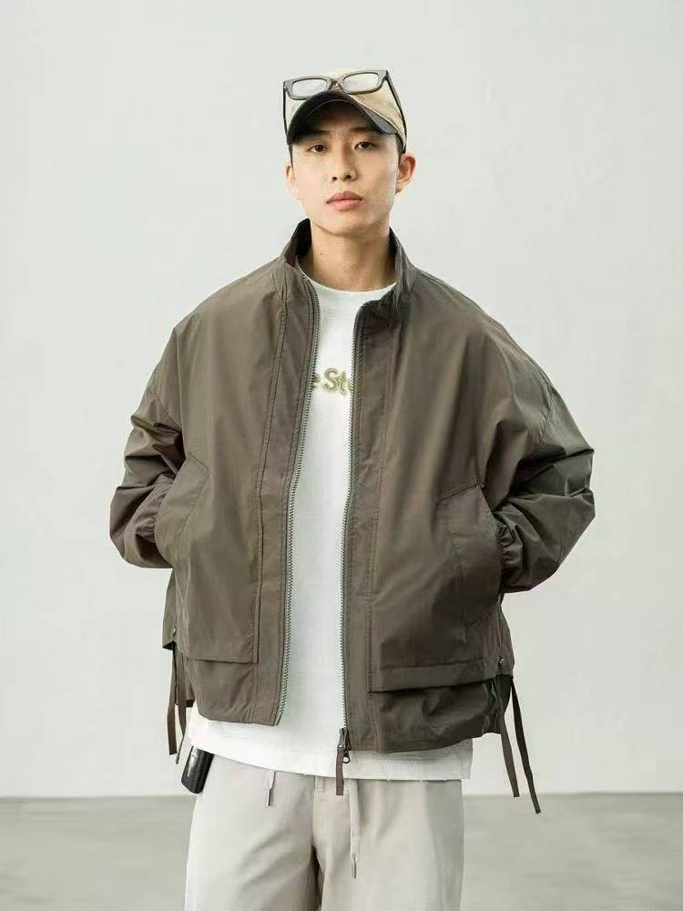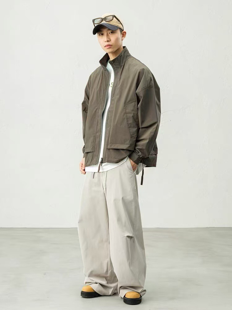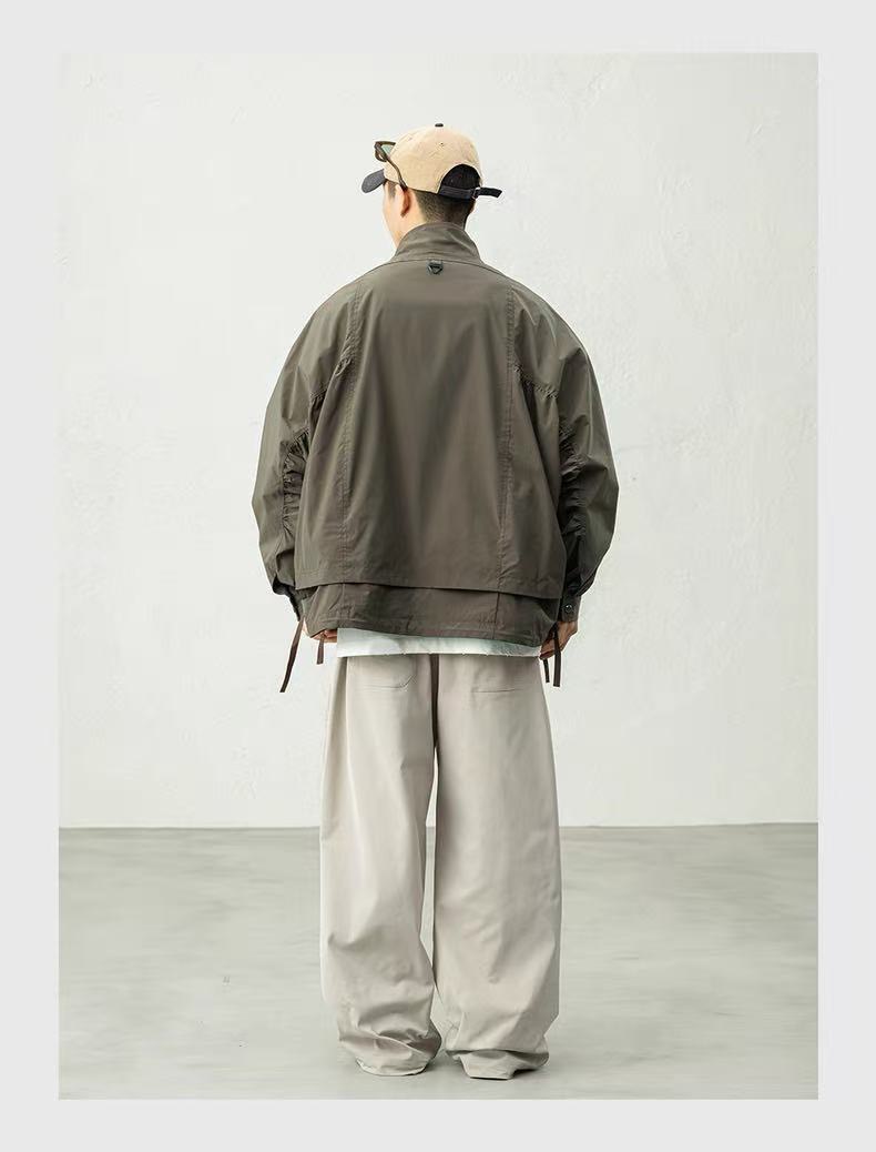 潮流立領造型落肩外套,假二件設計,叉肩袖,面料舒適紥實男女皆可穿,內裡無鋪棉.