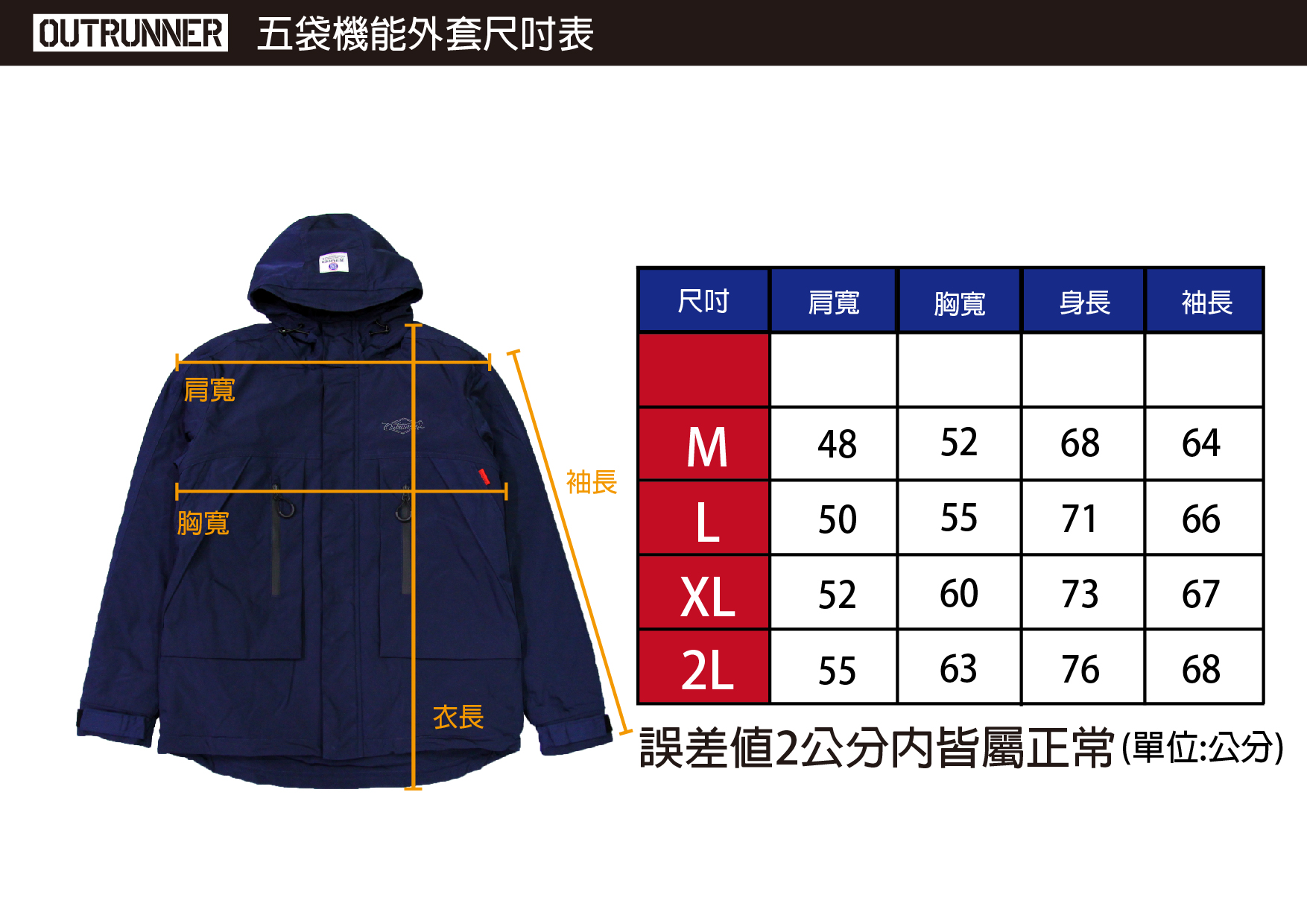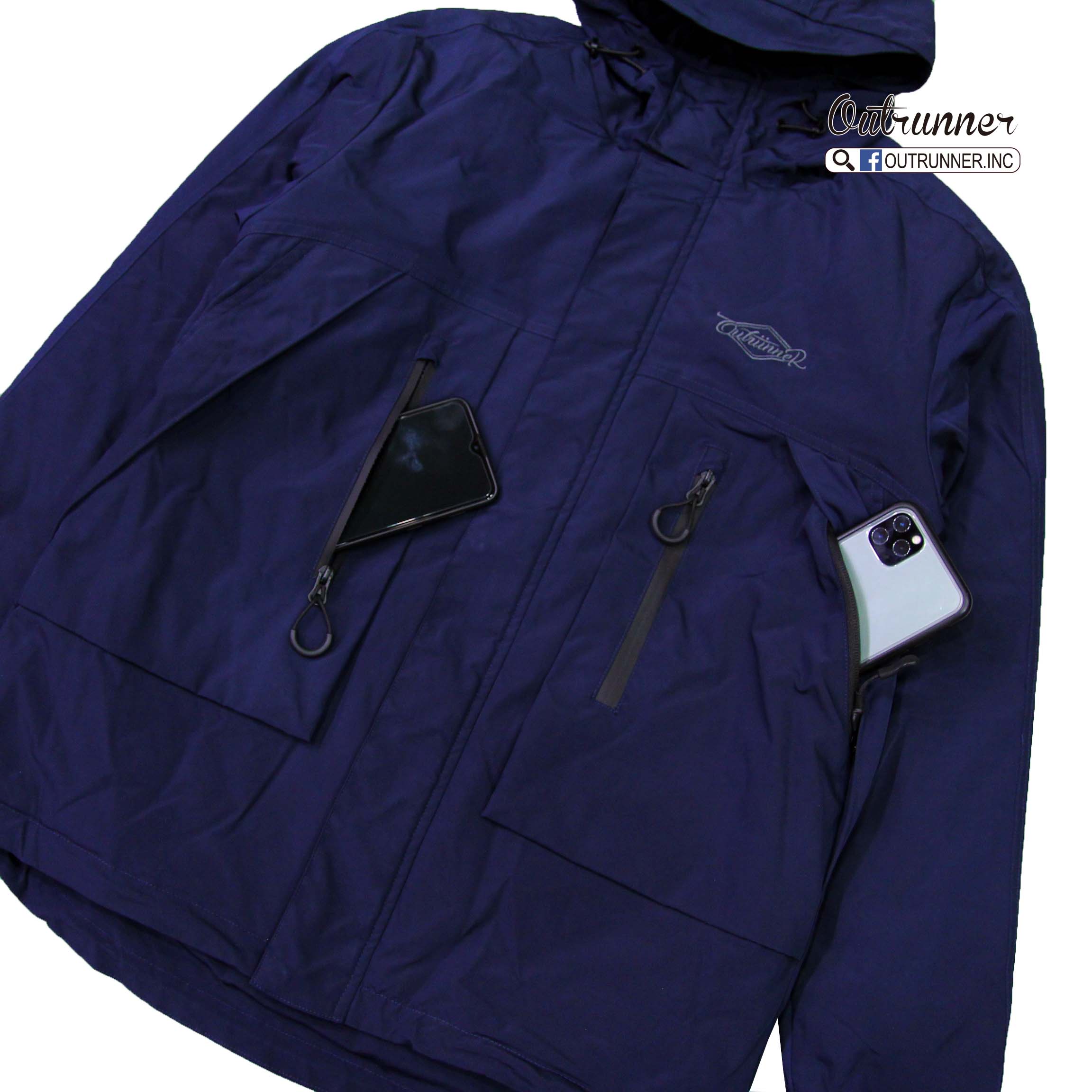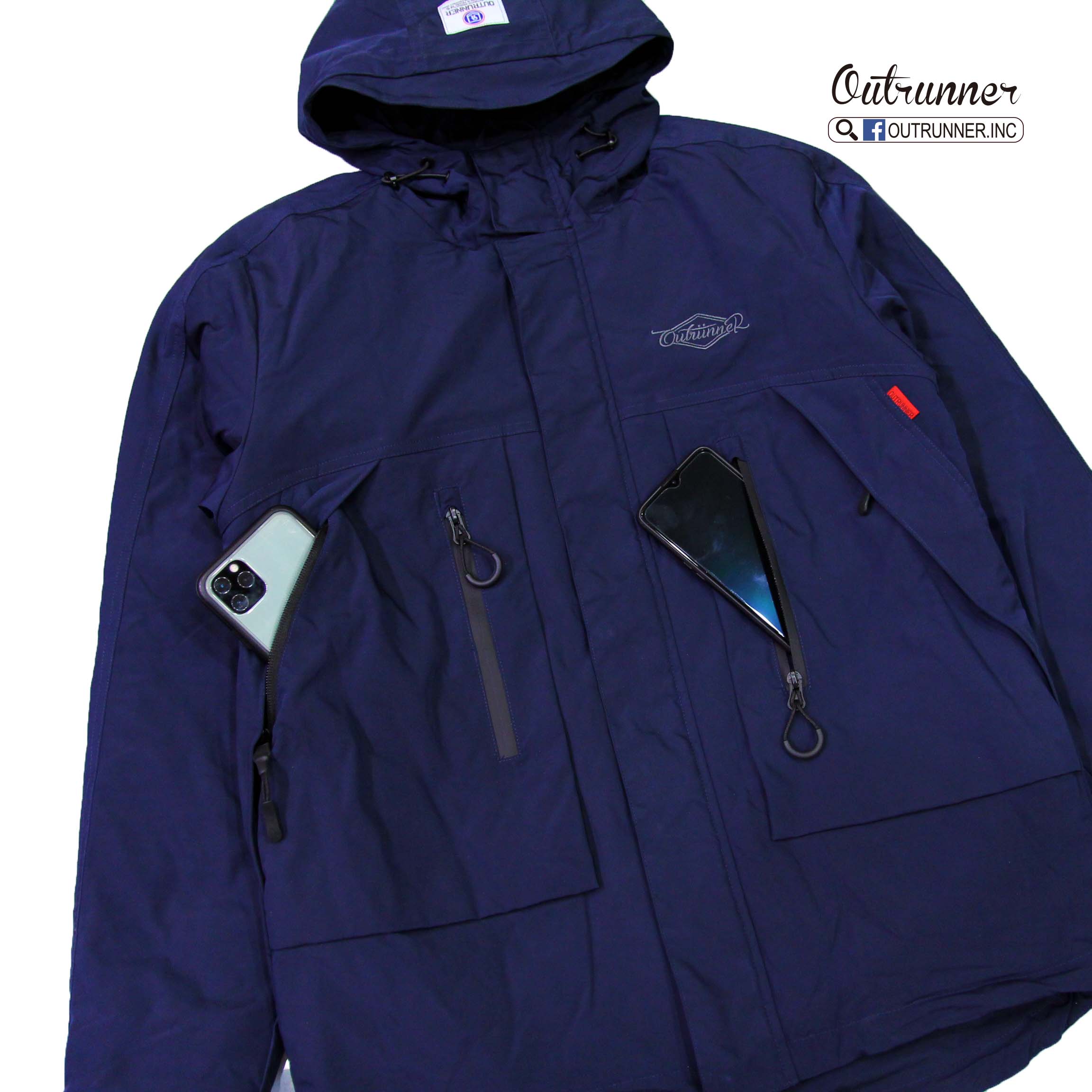 OUTRUNNER本季最後一款自訂款外套上架!!深藍和軍綠二色齊發,特殊口袋造型,前胸四個大口袋收納東西很方便,防水拉鍊設計,內裡鋪棉,非常適合台灣氣候,厚薄適中不悶熱,限量100件,售完不會再有。買件帥爆過年呀!!