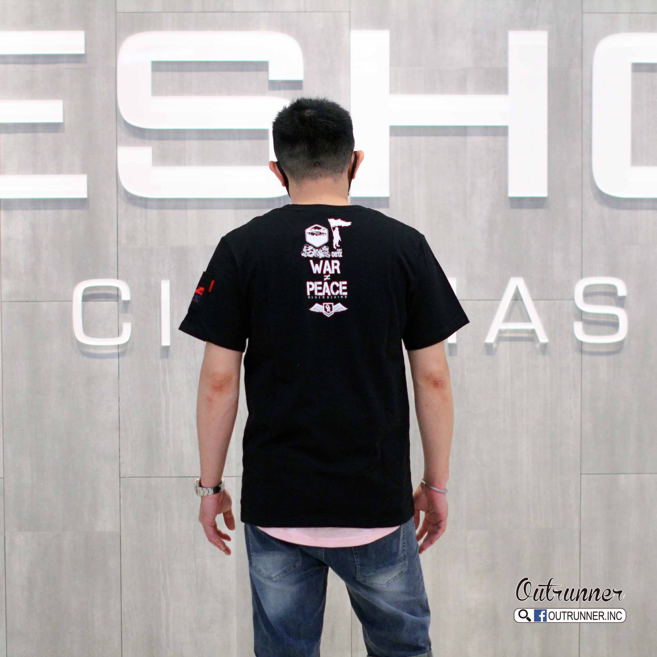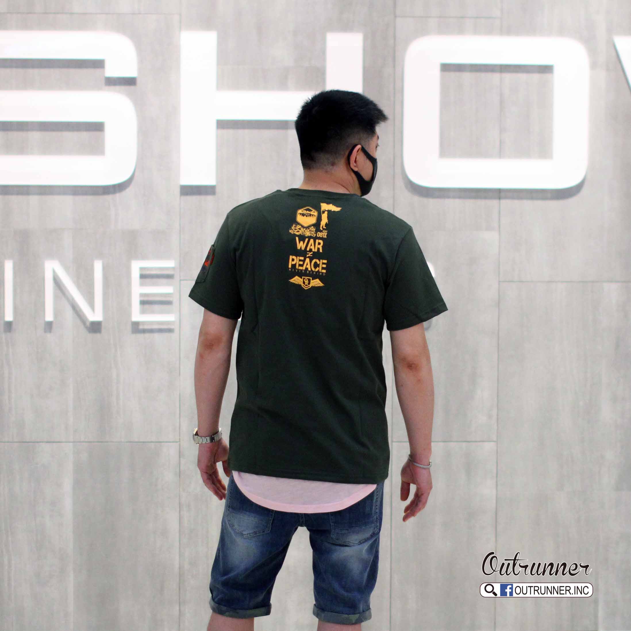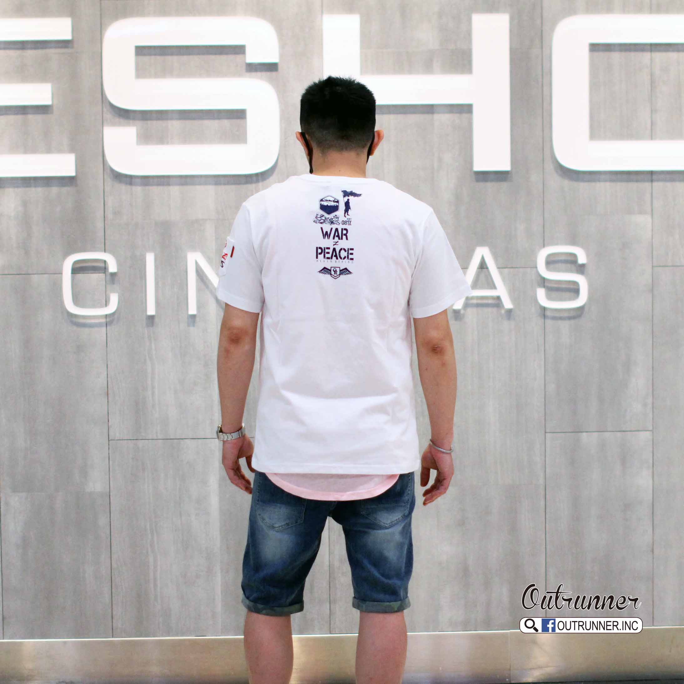 OUTRUNNER_品牌logo tee上架,前後片金油印花,讓整體更添值感,反戰標語,讓世界和平不要有戰爭,限量發售中!