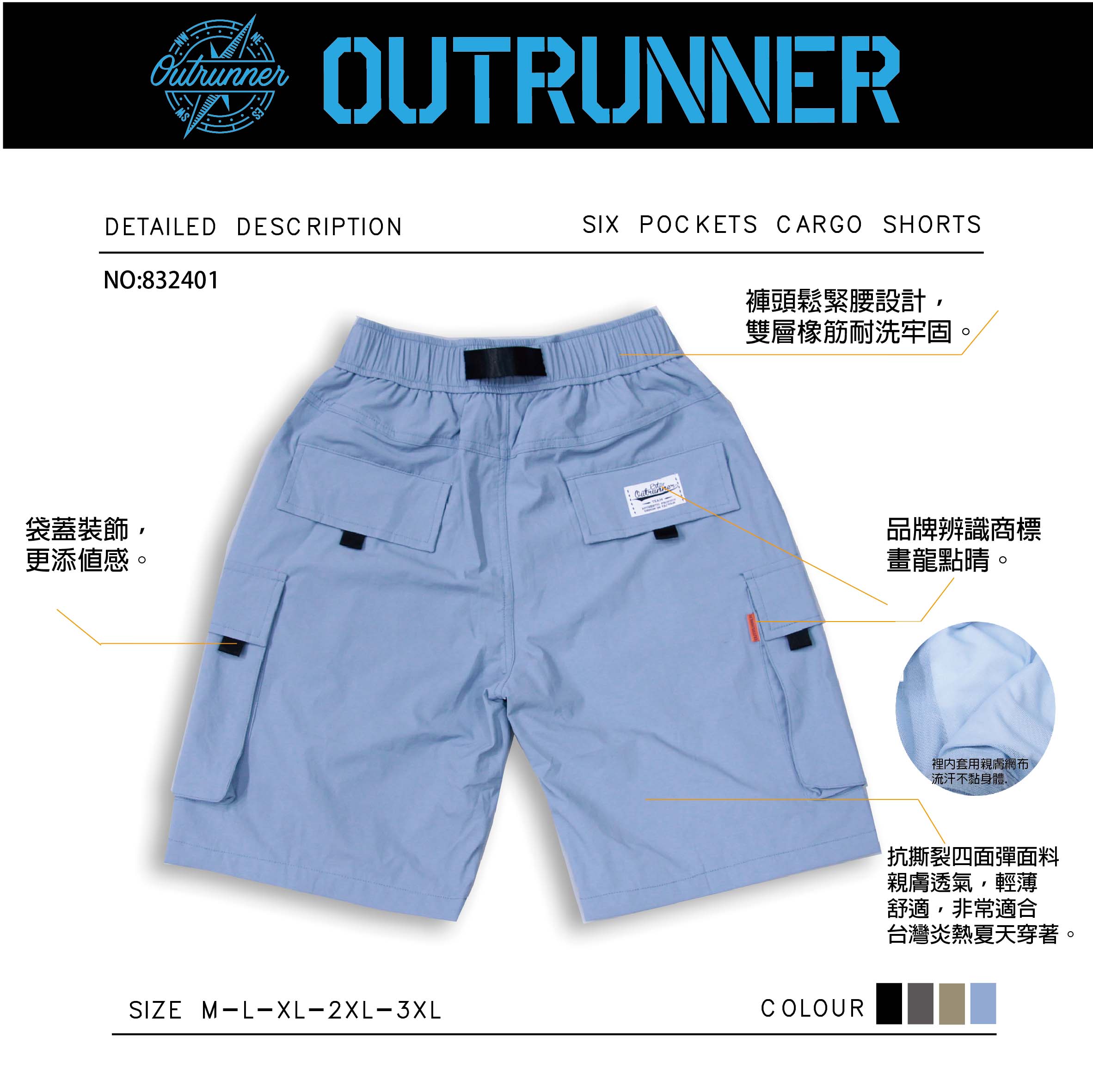 832401_抗撕裂四面彈工裝短褲發售,這次面料挑選很久,從年後選布至今,光作貨就耗時三個月,作工繁雜,面料為快乾尼龍布,親膚透氣舒適,四面彈力面料很適合現在台灣這種炎熱的夏天,褲子內裡套用非常親膚細緻的網布,流汗時不黏身體,決非仿間那種又硬又厚又不透氣便宜的褲子,穿上去舒適涼爽,只有一批售完不補貨了,喜歡的千萬不要錯過了。店長真心推薦.